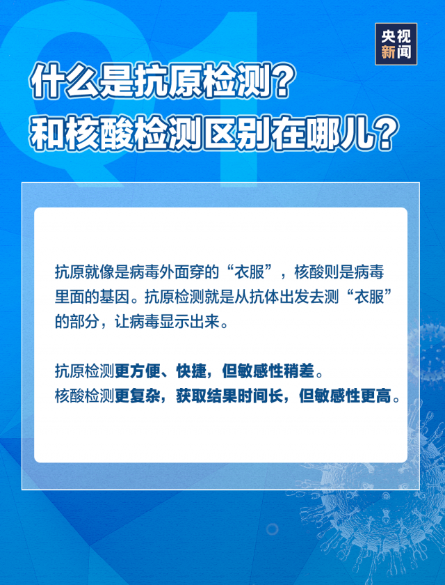 3月11日,国家卫健委印发《新冠病毒抗原检测应用方案(试行)》;3月12日,国家药监局批准五款新冠抗原自测产品上市。抗原检测有利于对疑似人群的早期分流和快速管理。哪些人可以自测?自测结果能否取代核酸结果?在哪能买自测试剂?看图了解。