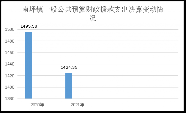 2020年一般公共预算财政拨款支出1495.58万元,占本年支出合计的88.81%。与2019年相比,一般公共预算财政拨款增加188.2万元,增长13.87%。主要变动原因是2020年区划调整,南坪镇由原南坪乡、观山乡、凤林乡组建而成,南坪镇在职人员调整。