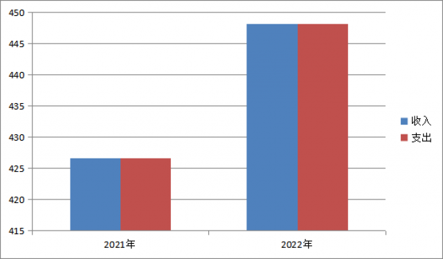 2022年度收、支总计448.15万元。与2021年相比,收、支总计各增加21.52万元,增长4.8%。主要变动原因是工资上调。
