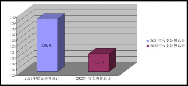 2022年度收、支总计133.05万元。与2021年相比,收、支总计各减少5.96万元,下降4.29%。主要变动原因是减少了人员经费支出。