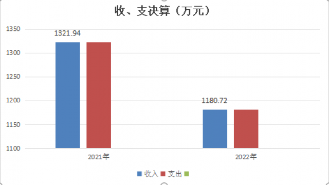 2022年度收、支总计1180.72万元。与2021年相比,收、支总计各减少141.22万元,下降10.68%。主要变动原因是基础设施投资减少。