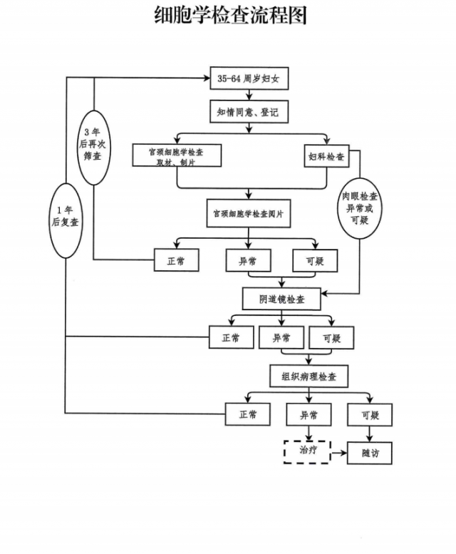 包括妇科检查、宫颈癌初筛(宫颈细胞学检查或高危型HPV检测),初筛结果异常还需要接受阴道镜检查,并根据检查结果确定是否需要进行组织病理学检查。