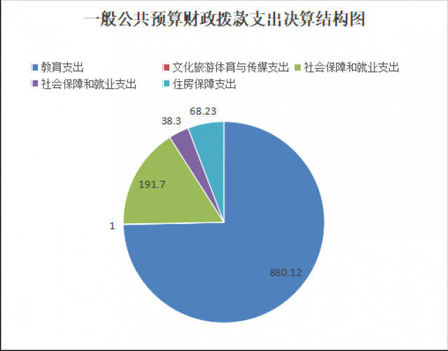 2023年度一般公共预算财政拨款支出1179.35万元,主要用于以下方面:教育支出880.12万元,占74.63%;文化旅游体育与传媒支出1万元,占0.09%;社会保障和就业支出191.70万元,占16.25%;卫生健康支出38.3万元,占3.25%;住房保障支出68.23万元,占5.78%。