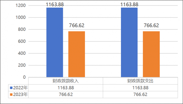 2023年度收、支总计1163.88万元。与2022年766.62万元相比,收、支总计各减少397.26万元,减少51.81%。主要变动原因是项目经费减少。