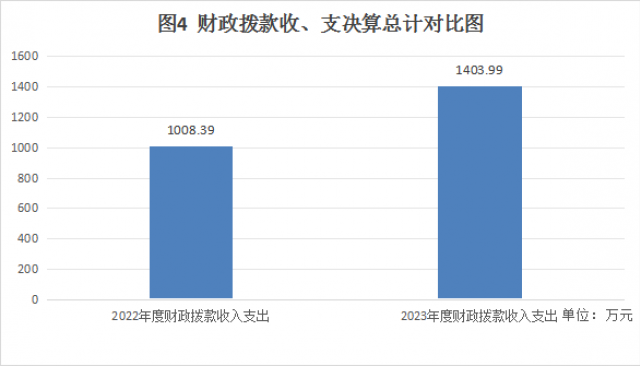 2023年度财政拨款收、支总计均为1638.34万元。与2022年度相比,财政拨款收、支总计各减少25.64万元,下降1.54%。主要变动原因是职工人数减少导致人员经费支出相应减少。