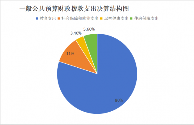 2023年度一般公共预算财政拨款支出1274.31万元,主要用于以下方面:一般公共服务支出1274.31万元,占100%;教育支出956.85万元,占80%;社会保障和就业支出193.17万元,占11%;卫生健康支出44.62万元,占3.4%;住房保障支出79.66万元,占5.6%;。