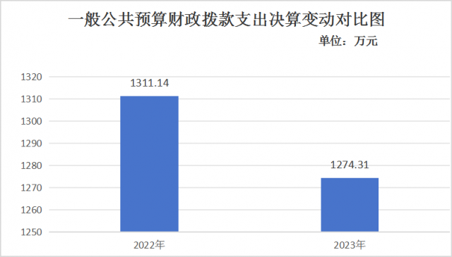 2023年度一般公共预算财政拨款支出1274.31万元,占本年支出合计的100%。与2022年度相比,一般公共预算财政拨款支出增加84.23万元,增长6.6%。主要变动原因是教师人员经费增多