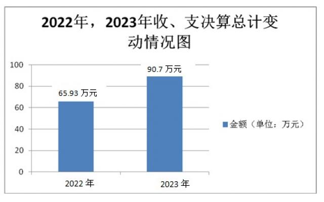 2023年度收、支总计均为90.7万元。与2022年度相比,收、支总计各增加24.77万元,增长37.57%。主要变动原因是增加了学生特长教育培训费。