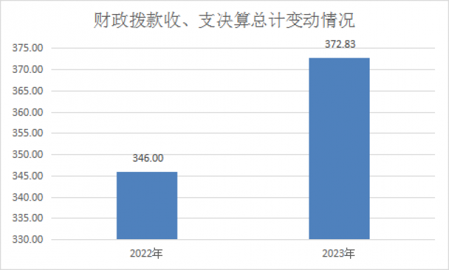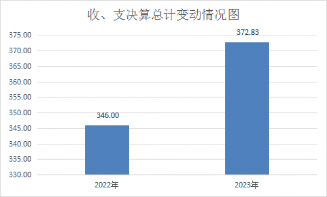2023年度收、支总计均为372.83万元。与2022年度相比,收、支总计各增加26.83万元,增加7.8%。主要变动原因是人员工资调标。
