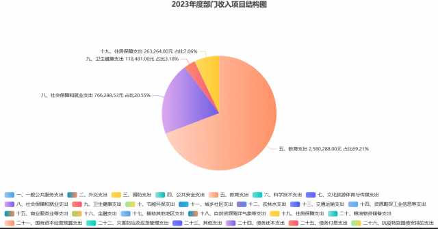 2023年度一般公共预算财政拨款支出372.83万元,主要用于以下方面:一般公共服务支出0万元,占0%;教育支出258.03万元,占69.2%;科学技术支出0万元,占0%;文化旅游体育与传媒支出0万元,占0%;社会保障和就业支出76.63万元,占20.6%;卫生健康支出11.85万元,占3.2%;住房保障支出26.33万元,占7.1%