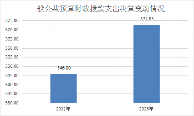 2023年度一般公共预算财政拨款支出372.83万元,占本年支出合计的100%。与2022年度相比,一般公共预算财政拨款支出增加26.83万元,增加7.8%。主要变动原因是人员工资调标。