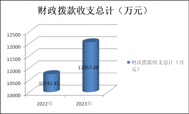 2023年度财政拨款收、支总计均为12057.48万元。与2022年度10742.45万元相比,财政拨款收、支总计各增加1315.03万元,增长12.24%。主要变动原因是项目资金新增原因(注:数据来源于财决01-1表)