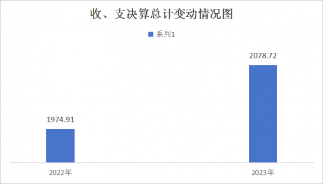 2023年度收、支总计均为2078.72万元。与2022年度相比,收、支总计各增加103.81万元,增长5.26%。主要变动原因是工资福利支出增加。