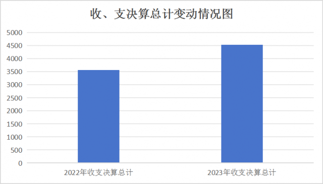 2023年度收、支总计均为4528.33万元。与2022年度相比,收、支总计各增加956.47万元,增长26.78%。主要变动原因是项目经费增加。