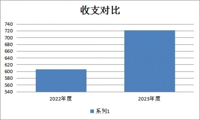 2023年度收、支分别721.92万元。与2022年相比,收、支总计各增加115.5万元,增长16%。主要变动原因本年项目增加139万元(原2021年度三墩乡卫生院恢复重建项目资金2023年度到位139万元)。