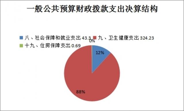 2023年一般公共预算财政拨款支出368.23万元,主要用于以下方面:社会保障和就业支出43.3万元,占11.8%;卫生健康支出324.23万元,占88%;住房保障支出0.69万元,占比0.2%。