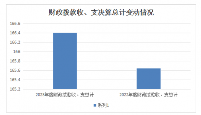 2023年度收、支总计均为166.41万元。与2022年度相比,收、支总计各增加0.76万元,增长0.46%。主要变动原因是人员工资调标以及项目预算增加。
