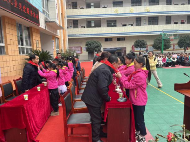 活动伊始,少先队员为来宾敬献红领巾,同时孩子们载歌载舞,用精彩绝伦的文艺充分展示了新时代少年儿童向上阳光、活力灵动、蓬勃朝气的精神风貌。