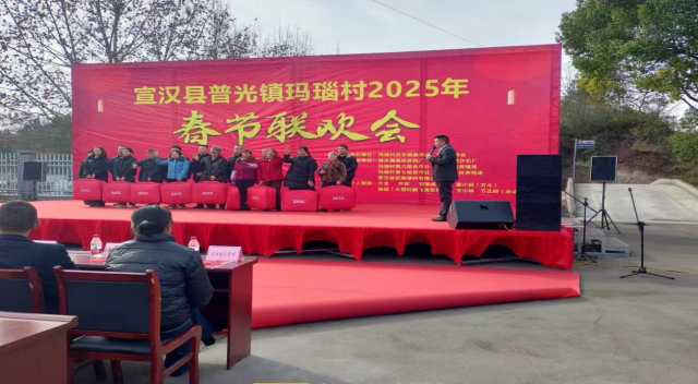 祥龙回首辞旧岁,金蛇起舞迎新年。1月26日,普光镇玛瑙村举行2025年春节联欢会,百余村民欢聚一堂,共叙情谊,共谋发展。