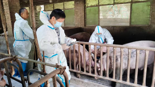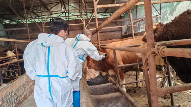 三是强化集中免疫接种。组建物资供应充足、调配顺畅的专业防疫队伍,深入各规模化养殖场、养殖合作社及散养户,按照“乡不漏村、村不漏户、户不漏畜、畜不漏针”的原则,对口蹄疫、高致病性禽流感、小反刍兽疫等规定病种进行强制免疫,确保免疫密度和免疫质量达到100%,目标完成免疫接种猪7965头,牛768头。