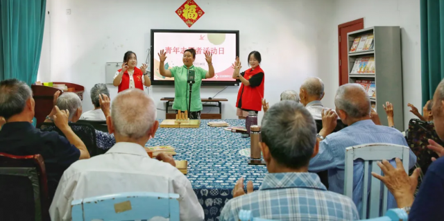 文艺互动环节精彩纷呈。志愿者们倾情唱响《外婆的澎湖湾》《夕阳红》等经典老歌,熟悉的旋律缓缓流淌,唤醒了老人们心底的青春记忆。不少老人循着旋律轻声跟唱,眼神中满是怀念与动容,现场掌声与欢笑交织不断。随后,在护理员的专业指导下,志愿者们带领老人们做起简易手指操,耐心拆解每个动作的要领,助力老人们活动关节、锻炼手部灵活度。老人们格外认真,一位年过八旬的爷爷完成整套动作后,还自信地向众人展示成果,尽显不服老的精神风采。