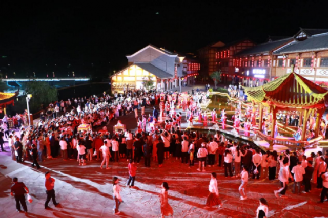 夜幕降临,巴山大峡谷土家儿女以山水为幕,廊桥为台,用场景式演出演绎一首流淌千年的浪漫长诗,演员们穿着喜庆的土家族传统服饰,敲锣打鼓迎喜事,将幸福和欢乐传递给在场的每一个人。活动分为司锣开道引宾朋、青阶踏歌迎远客、廊桥欢歌接亲行、土家三关招佳婿、泪洒闺楼哭嫁情、支客司趣话逗新郎等10大篇章,让游客沉浸式领略到土家婚嫁的人文魅力。