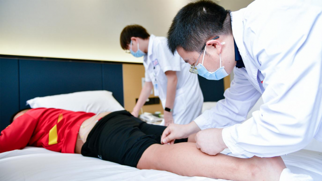 中西医技术融合,全面提升理疗效能。本次服务充分展现了“中医传统智慧”与“现代康复技术”的有机结合。一是传统技法显匠心。针对肌肉紧张、疲劳的队员,运用推拿、按摩等手法舒筋活络,快速缓解疲劳;对于关节活动受限或旧伤不适,则通过针灸疏通经络,有效减轻酸痛。二是现代设备添动力。科室引入了温热中低频治疗仪、深层肌肉放松仪、电针等现代康复设备。这些技术能深度刺激肌肉、促进血液循环、增强肌肉力量并预防运动损伤,为运动员提供了更深入、更全面的理疗体验。这种“传统现代”的理疗模式,显著提升了运动员的身体状态和竞技准备水平。