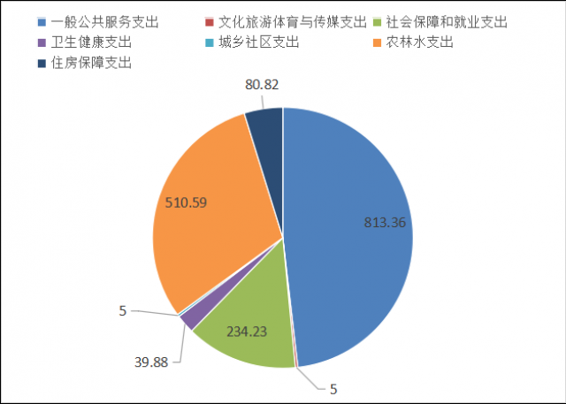 2024年度一般公共预算财政拨款支出1688.88万元,主要用于以下方面:一般公共服务支出813.36万元,占48.2%;文化旅游体育与传媒支出5万元,占0.3%;社会保障和就业支出234.23万元,占13.9%;卫生健康支出39.88万元,占2.4%;城乡社区支出5万元,占0.3%;农林水支出510.59万元,占30.2%;住房保障支出80.82万元,占4.7%。