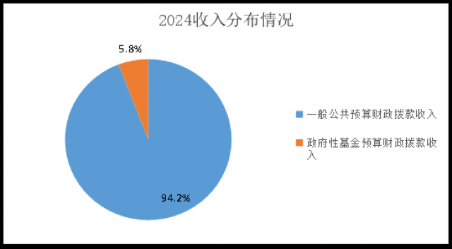 2024年本年收入合计2172.6万元,其中:一般公共预算财政拨款收入2046.56万元,占94.2%;政府性基金预算财政拨款收入126.04万元,占5.8%。