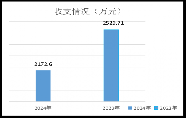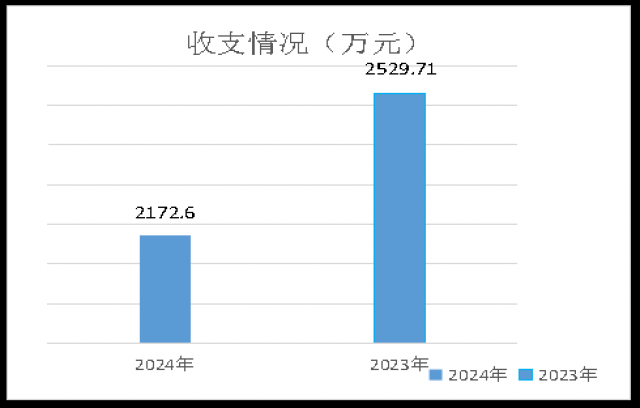 2024年度收、支总计2172.6万元。与2023年相比,收、支各减少357.11万元,减少14.12%。
