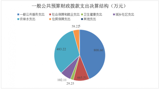 2024年度一般公共预算财政拨款支出1372.01万元,主要用于以下方面:一般公共服务支出647.59万元,占47.2%;社会保障和就业支出148.72万元,占10.84%;卫生健康支出29.25万元,占2.13%;城乡社区支出102.11万元,占7.44%;农林水支出483.22万元,占35.23%;住房保障支出58.22万元,占4.24%;其他支出5万元,占0.36%。