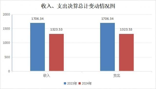 2024年度收入、支出总计均为1323.53万元。与2023年度相比,收入、支出总计各减少382.81万元,增长/下降22.43%。主要变动原因是一般公共预算财政拨款减少。