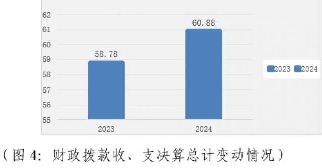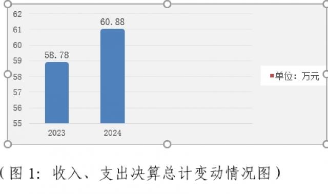 2024年度收、支总计60.88万元。与2023年相比,收、支总计各增加2.1万元,增长9%。主要变动原因是增加人员调资和基础性绩效。