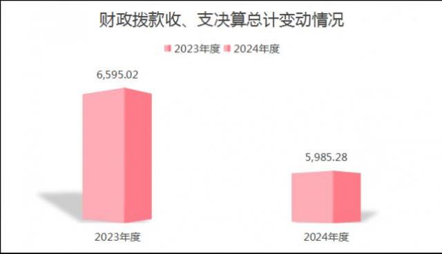 2024年度财政拨款收入、支出总计均为5,985.28万元。与2023年度相比,财政拨款收入总计、支出总计各减少609.74万元,下降9.3%。主要变动原因是人员变化预算调整及年终基建投资预算调整等。