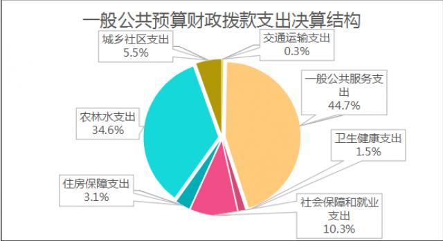 2024年度一般公共预算财政拨款支出4,393.89万元,主要用于以下方面:一般公共服务支出1,964.45万元,占44.7%;社会保障和就业支出450.89万元,占10.3%;卫生健康支出66.25万元,占1.5%;城乡社区支出240万元,占5.5%;农林水支出1,521.47万元,占34.6%;交通运输支出12.92万元,占0.3%;住房保障支出137.92万元,占3.1%。