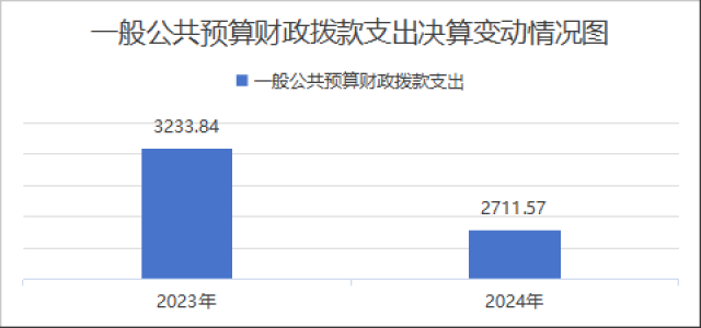 2024年度一般公共预算财政拨款支出2711.57万元,占本年支出合计的46.07%。与2023年度相比,一般公共预算财政拨款支出减少522.27万元,下降16.15%。主要变动原因是人员减少。