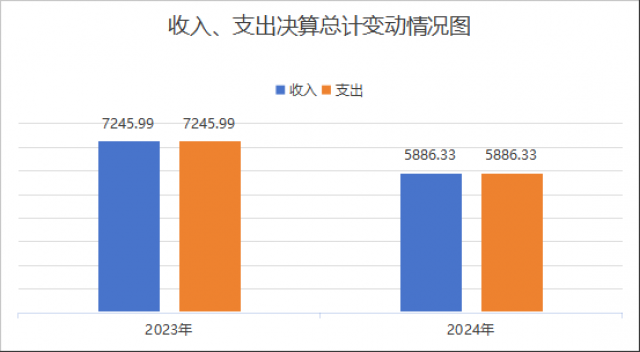 2024年度收入、支出总计均为5886.33万元。与2023年度相比,收入、支出总计各减少1359.66万元,下降18.76%。主要变动原因是人员减少,支出减少以及项目支出减少。