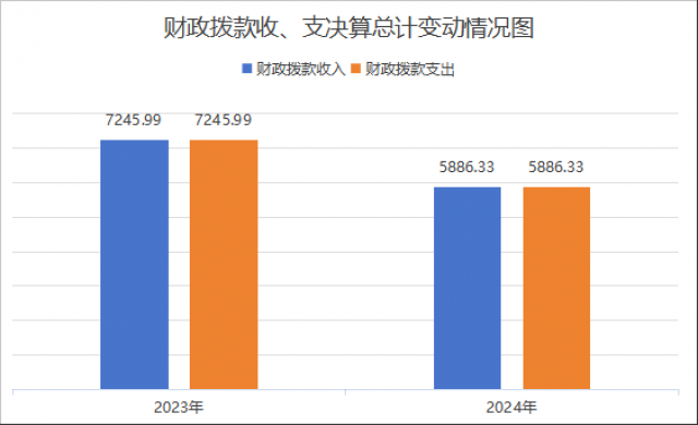 2024年度财政拨款收入、支出总计均为5886.33万元。与2023年度相比,财政拨款收入总计、支出总计各减少1359.66万元,下降18.76%。主要变动原因是人员减少、项目支出减少。