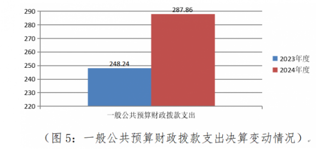 2024年度一般公共预算财政拨款支出287.86万元,占本年支出合计的100%。与2023年度相比,一般公共预算财政拨款支出增加39.62万元,上升15.9%。主要变动原因是2024年度单位人员增加。