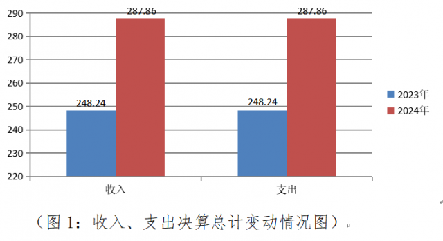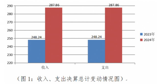 2024年度收入、支出总计均为287.86万元。与2023年度相比,收入、支出总计各增加39.62万元,上升15.9%。主要变动原因是2024年度单位人员增加。