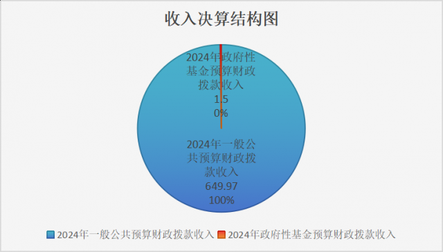 2024年度本年收入合计651.47万元,其中:一般公共预算财政拨款收入649.97万元,占99.77%;政府性基金预算财政拨款收入1.5万元,占2.3%。