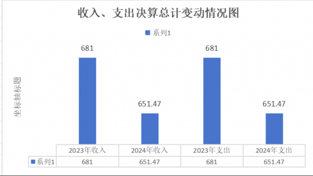 2024年度收入、支出总计均为651.47万元。与2023年度相比,收入、支出总计各减少29.53万元,下降4.33%。主要变动原因是教师人员减少,工资减少。