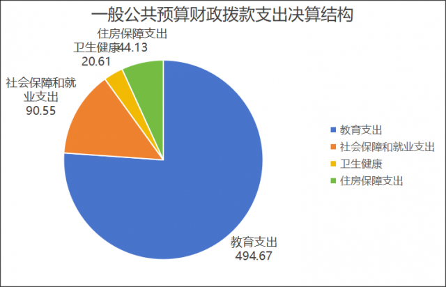 2024年度一般公共预算财政拨款支出649.97万元,主要用于以下方面:教育支出494.67万元,占76.11%;社会保障和就业支出90.55万元,占13.93%;卫生健康支出20.61万元,占3.17%;住房保障支出44.13万元,占6.79%。