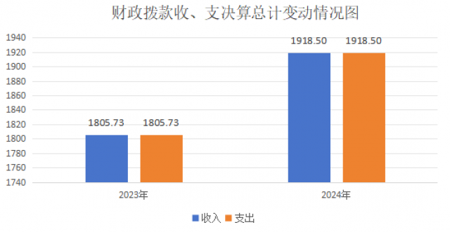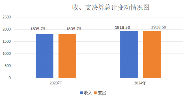 2024年度收、支总计均为1918.5万元。与2023年度相比,收、支总计各增加112.78万元,上升6.25%。主要变动原因是相较本年项目支出增加。