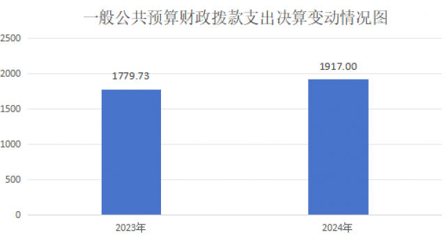 2024年度一般公共预算财政拨款支出1917万元,占本年支出合计的99.92%。与2023年度相比,一般公共预算财政拨款支出增加137.28万元,增长7.71%。主要变动原因是本年度财政投入增加。