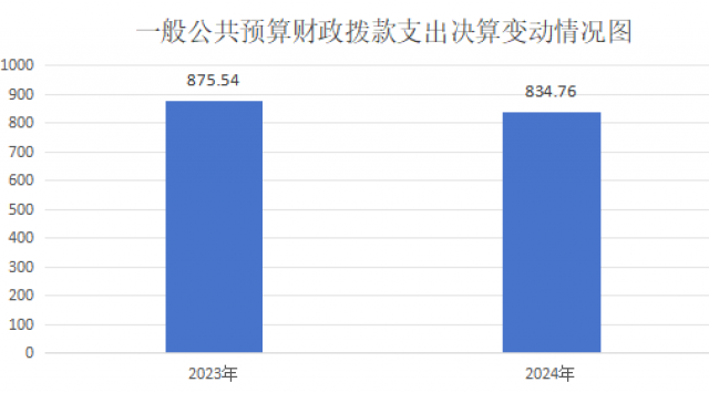 2024年度一般公共预算财政拨款支出875.54万元,占本年支出合计的100%。834.76万元。与2023年度相比,一般公共预算财政拨款支出减少40.78万元,下降4.66%。主要变动原因是教育资金支出减少
