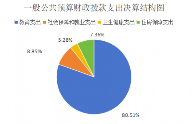 2024年度一般公共预算财政拨款支出834.76万元,主要用于以下方面:教育支出672.03万元,占79.74%;社会保障和就业支出73.85万元,占10.82%;卫生健康支出27.42万元,占3.36%;住房保障支出61.46万元,占6.08%;