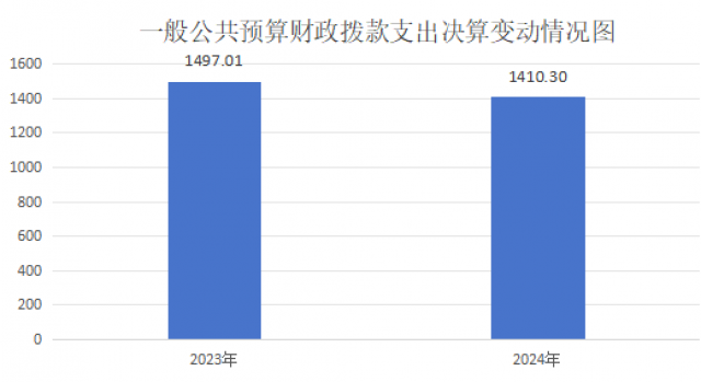 2024年度财政拨款收、支总计均为1410.3万元。与2023年度相比,收、支总计各减少86.71万元,降低5.79%。主要变动原因是学生人数减少导致的生均经费减少。