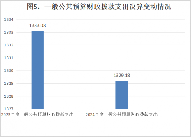 2024年度一般公共预算财政拨款支出1329.18万元,占本年支出合计的100%。与2023年度相比,一般公共预算财政拨款支出减少3.9万元,下降2.9%。主要变动原因是人员减少经费减少。