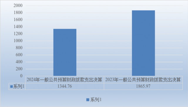 2024年度一般公共预算财政拨款支出1344.76万元,占本年支出合计的95.18%。与2023年度相比,一般公共预算财政拨款支出减少521.21 万元,下降 27.93%。主要变动原因是公用经费及项目指标257.35万元未及时支付年底收回财政。